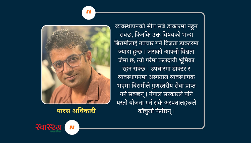 केही प्रश्न भने उठ्छन्– के नेपालमा फिजिसियन छैनन् र? कि फिजिसियन बन्दैनन् डाक्टर? वा फिजिसियन बन्ने वातावरण छैन?