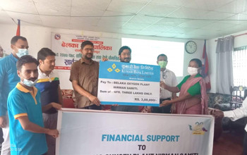 कुमारी बैंक लिमिटेडले उदयपुरको बेलकामा निर्माणाधीन अवस्थामा रहेको अक्सिजन प्लान्टलाई तीन लाख रुपैयाँ सहयोग गरेको छ।