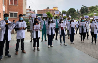 डाक्टरमाथि हातपात गर्नेलाई कारबाहीको माग गर्दै नेपाल मेडिकल कलेजका चिकित्सक आन्दोलनमा