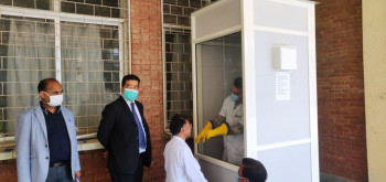 कोभिड-१९ परीक्षणका लागि टिचिङ अस्पतालमा पिपिई बुथ