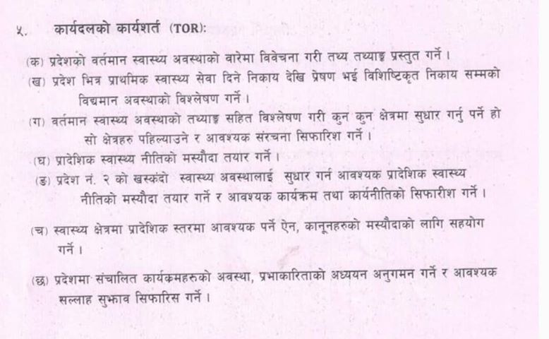 कार्यदललाई ६ महिनाको समय दिइएको छ।