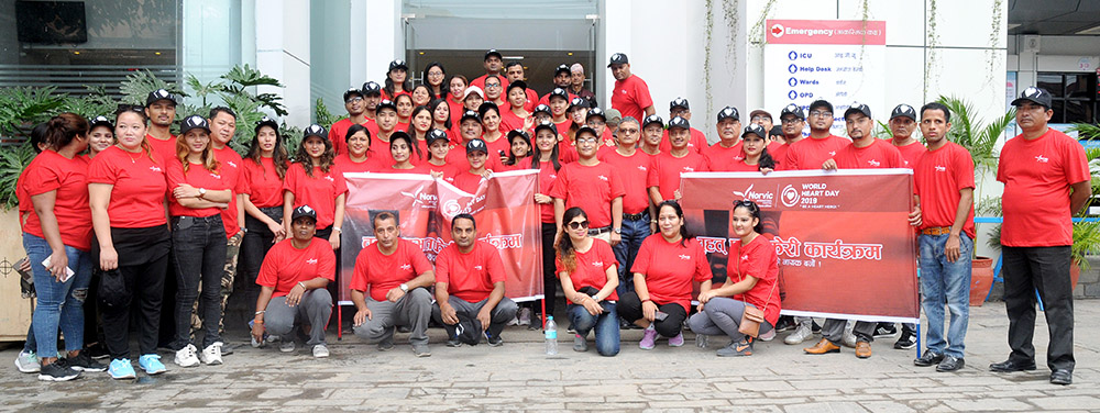 काठमाडौँ– विश्व मुटु दिवसको अवसरमा नर्भिक इन्टरनेसनल हस्पिटलले आज प्रभातफेरीको आयोजना गरेको छ। हरेक वर्ष सेप्टेम्बर २९ तारिखका दिन मुटु दिवस मनाइन्छ।