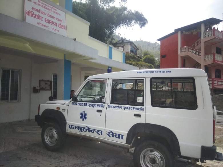 बादिकोट स्वास्थ्य चौकीको व्यवस्थापनमा सोमबार आयोजित औपचारिक कार्यक्रममा स्वास्थ्य कार्यालय प्युठानका प्रमुख विशाल सुवेदीले झिमरुक गाउँपालिकाका अध्यक्ष तिलक जिसी र स्वास्थ्य चौकी संचालन तथा व्यवस्थापन समिति अध्यक्ष एवं झिमरुक-२ का वडा अध्यक्ष बलबहादुर महतरालाई एम्बुलेन्स को चाबी, बिलबुक र आवश्यक कागजपत्र हस्तान्तरण गरेका हुन्।