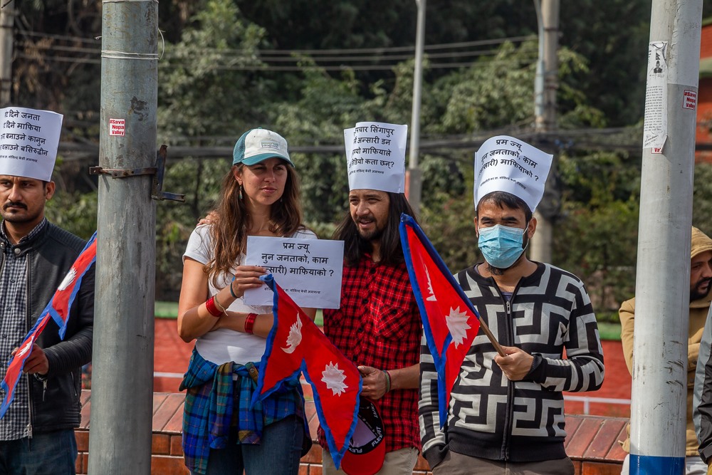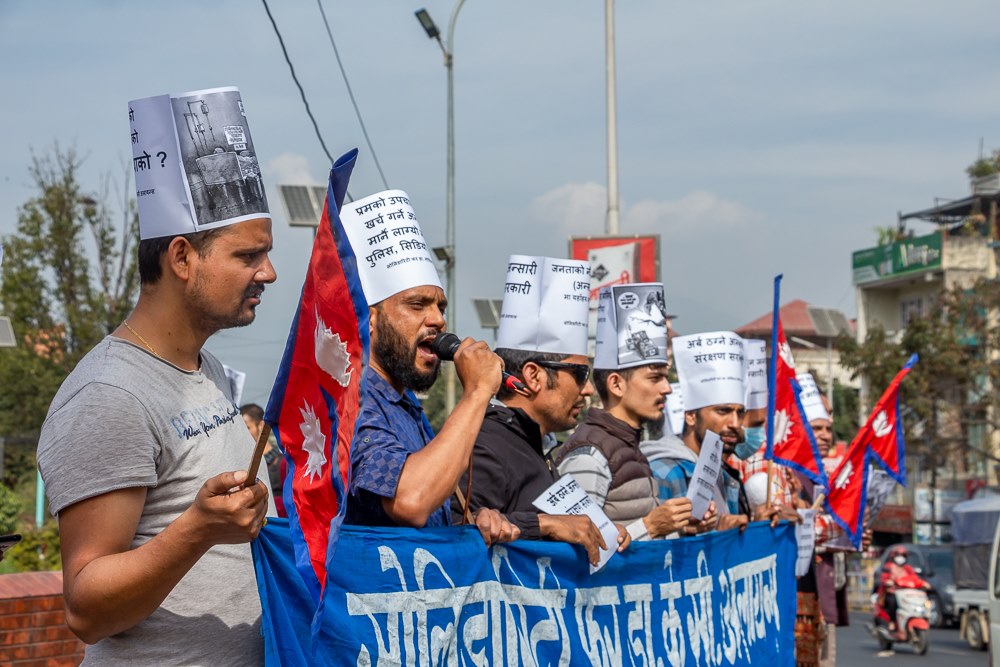 'अर्बौ लुट्ने अन्सारी संरक्षण सरकारी', '१० अर्बको लुट नागरिकलाई छुट' भन्ने नारासहित नागरिकहरूले प्रदर्शन भइरहेकाे छ।