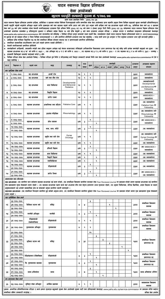सह–प्राध्यपकका लागि ५ जना, सहायक प्राध्यापकमा लागि १७ जना, सिनियर स्र्टा नर्सका लागि ५ जना, फार्मेसी अधिकृतका लागि २ जना, रेडियोलोजीमा १ जना, पुस्तकालय अधिकृत १ जना, जुनियर स्टाफ नर्स २० जना, रेडियोग्राफ २ जना, सिनियर पुस्तकालय सहायक २ जना, ल्याव असिस्टेन्ट ४ जना र जुनियर लेखा अधिकृत १ जना गरी ६० जना कर्मचार मागेको छ।