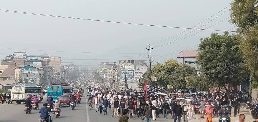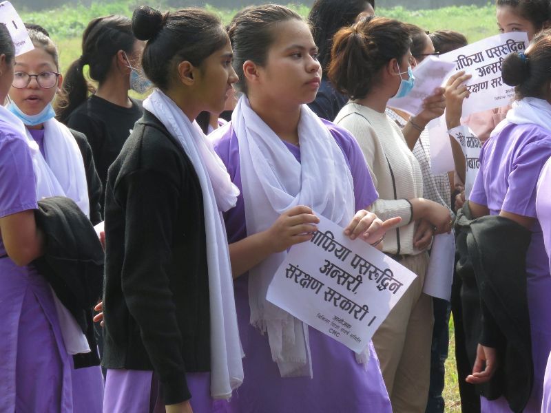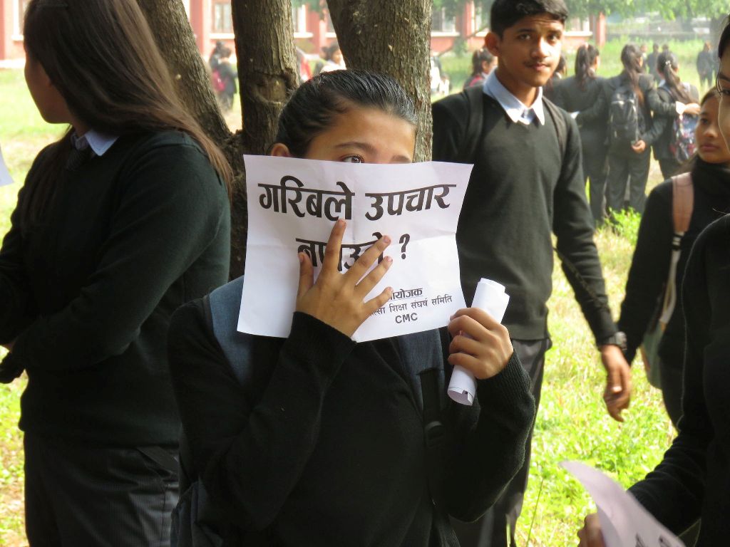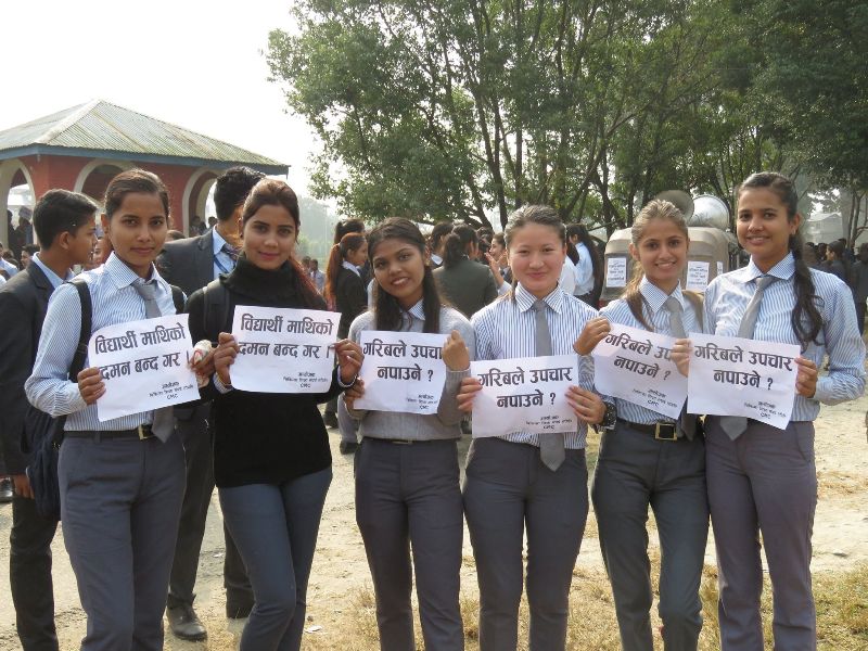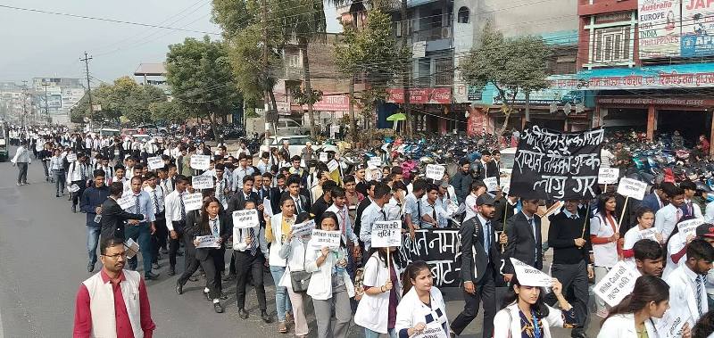 चिकित्सा शिक्षा संघर्ष समितिको आह्वानमा वीरेन्द्र बहुमुखी क्याम्पसबाट सुरु भएको विरोध र्याली लायन्स चोक, सहिद चोक हुँदै पुल्चोक पुगेर पुनः सहिद चोक, लायन्स चोक, वीरेन्द्र क्याम्पस हुँदै चौबिसकोठीमा पुगेर कोणसभामा परिणत भएको थियो।