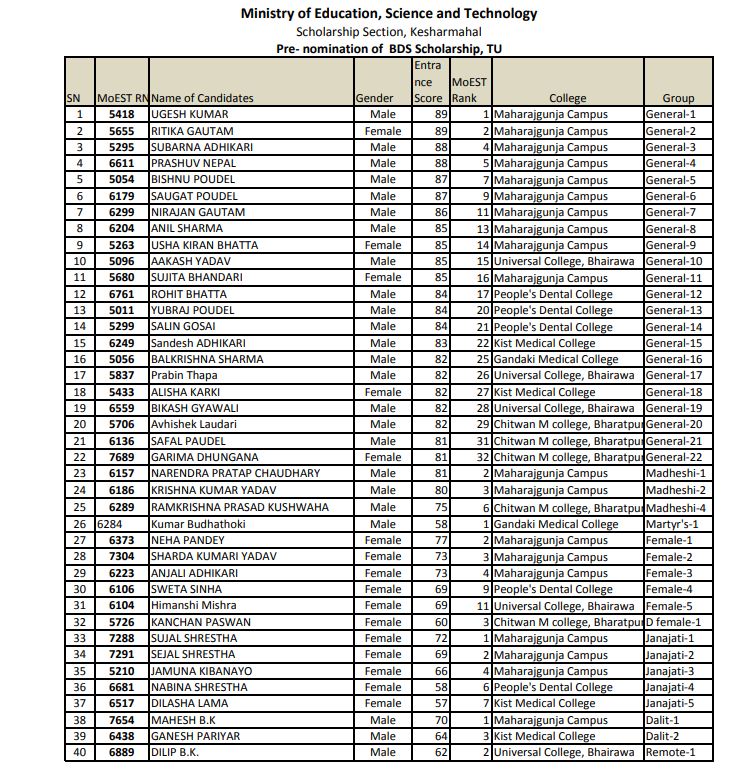 सोही अनुसार शिक्षा मन्त्रालयले छात्रवृत्तिमा अध्ययन गर्न पाउने विद्यार्थीको नामावली सार्वजनिक गरेको हो।