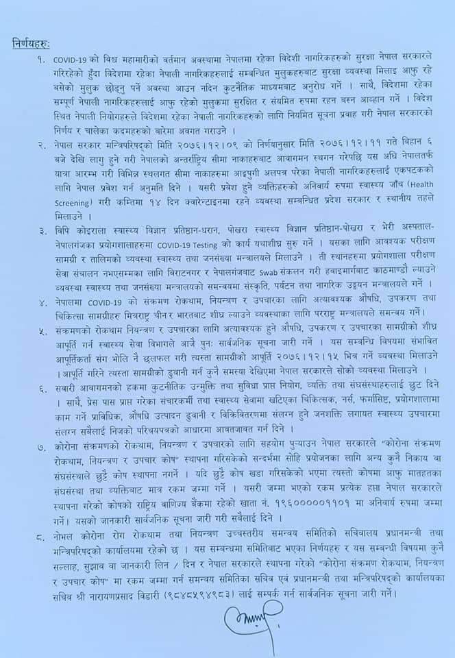यस्ता छन् बैठकका ८ बुँदे निर्णय