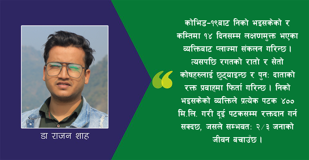 प्लाज्मा थेरापी : १०० वर्ष पुरानो विधिले कोभिड–१९ को उपचारमा जगाएको आशा