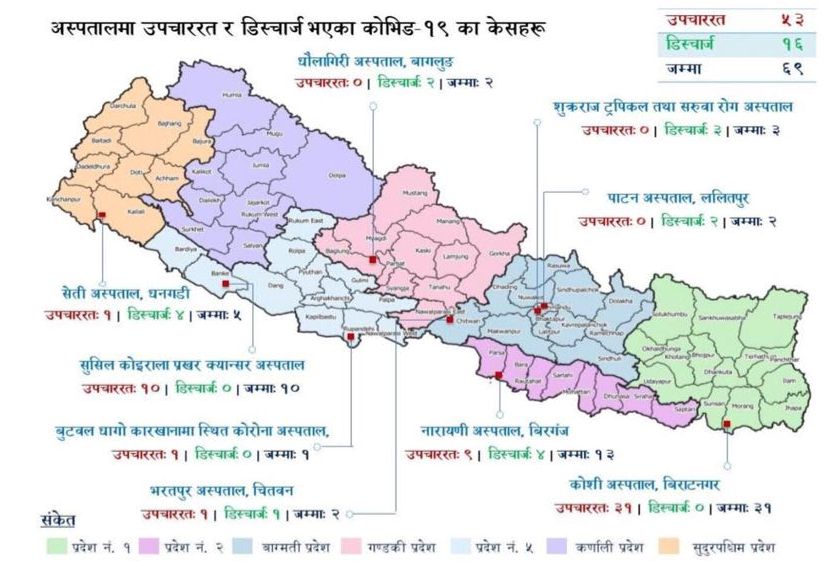 यो सहित नेपालमा कोरोना भाइरसको संक्रमण देखिनेको संख्या ६९ पुगेको छ। जसमध्ये १६ जना निको भइसकेका छन्।