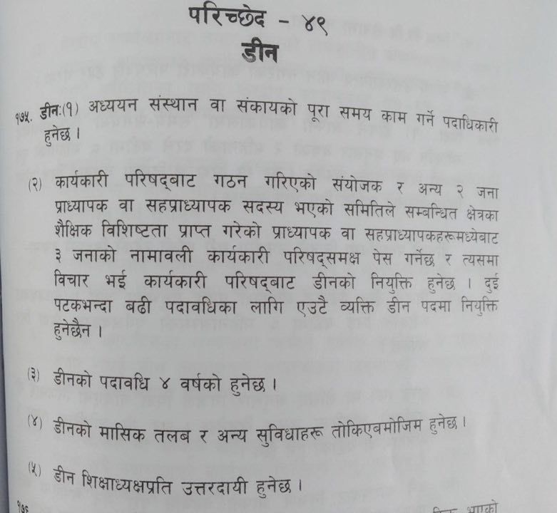त्रिविका उपकुलपतिको अध्यक्षतामा रहेको कार्यकारी परिषदले सोही आधारमा डिनलाई नियुक्त गर्ने छन्।
