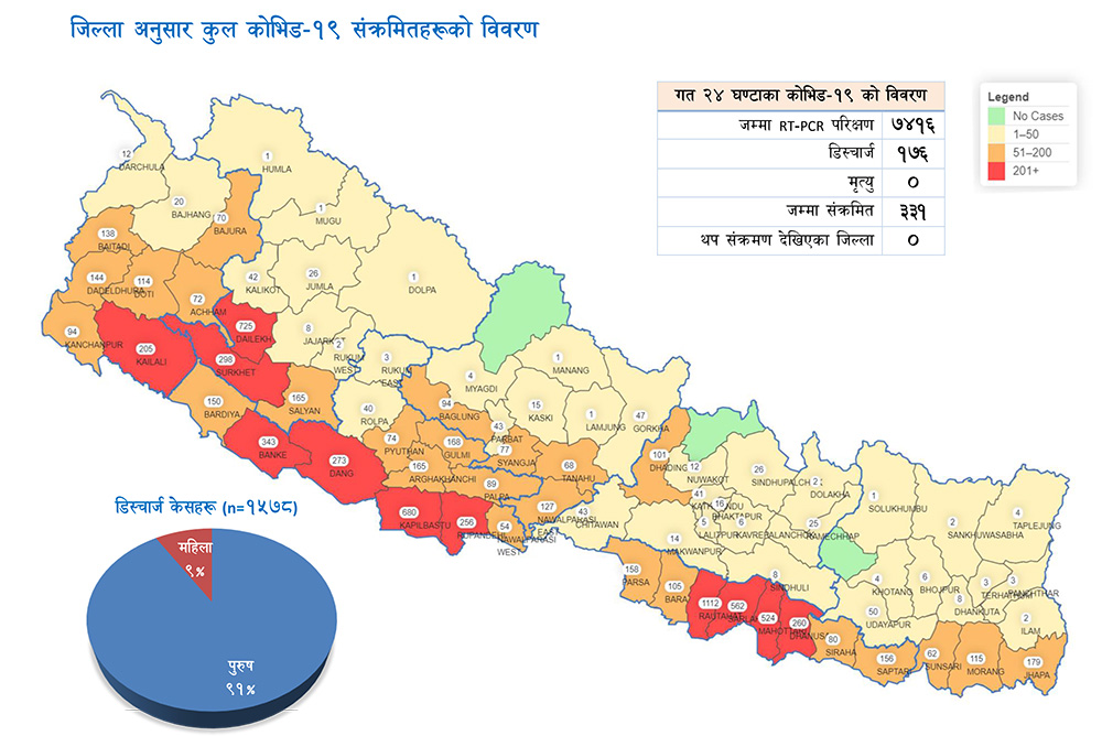 यस्तै हुम्ला, मुगु, डोल्पा, सोलुखुम्बु, मनाङ र लमजुङमा एक एक जना संक्रमित फेला परेका छन्।