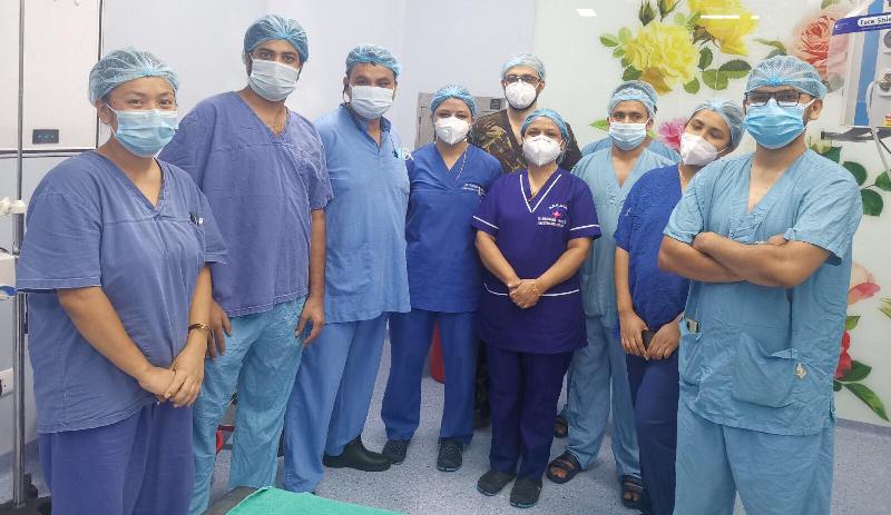 डा अनिलविक्रम कार्कीको नेतृत्वमा डा सदीक्षा अधिकारी, डा रोबिन भट्ट, डा भावना वाग्ले र नर्सहरु एन्जल कालाखेती, सरस्वती गुरु सहितको टोलीले कोरोना संक्रमित महिलाको मुखको क्यान्सरको शल्यक्रिया गरेको हो। मंगलबार सम्पन्न शल्यक्रिया गर्न करिब ५ घण्टाको समय लागेको उपचारमा संलग्न डा कार्कीले जानकारी दिए।