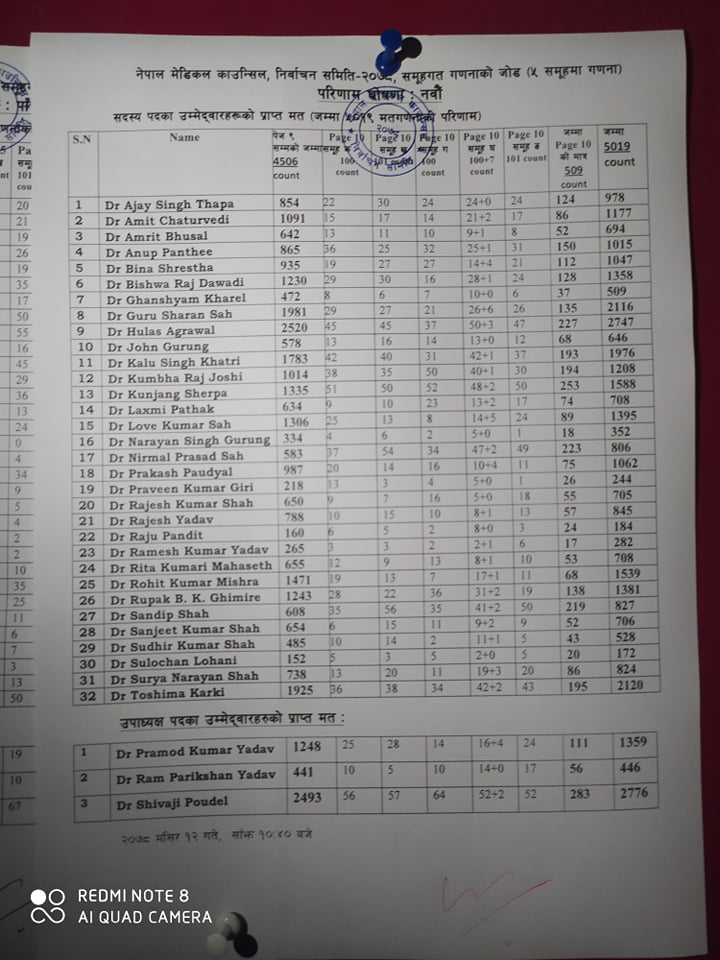 यसैगरी, सदस्यमा सुरुदेखिनै डा हुलास अग्रवाल अगाडि छन्। उनले २७७४ मत ल्याएका छन्।